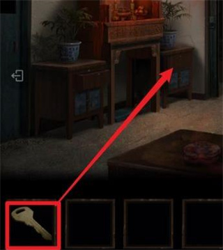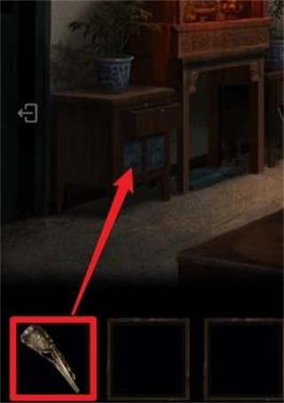 8、返回客厅,点击神龛右边的柜子,使用【钥匙】打开柜子,得到【老虎钳】。
