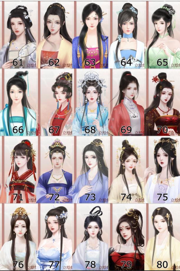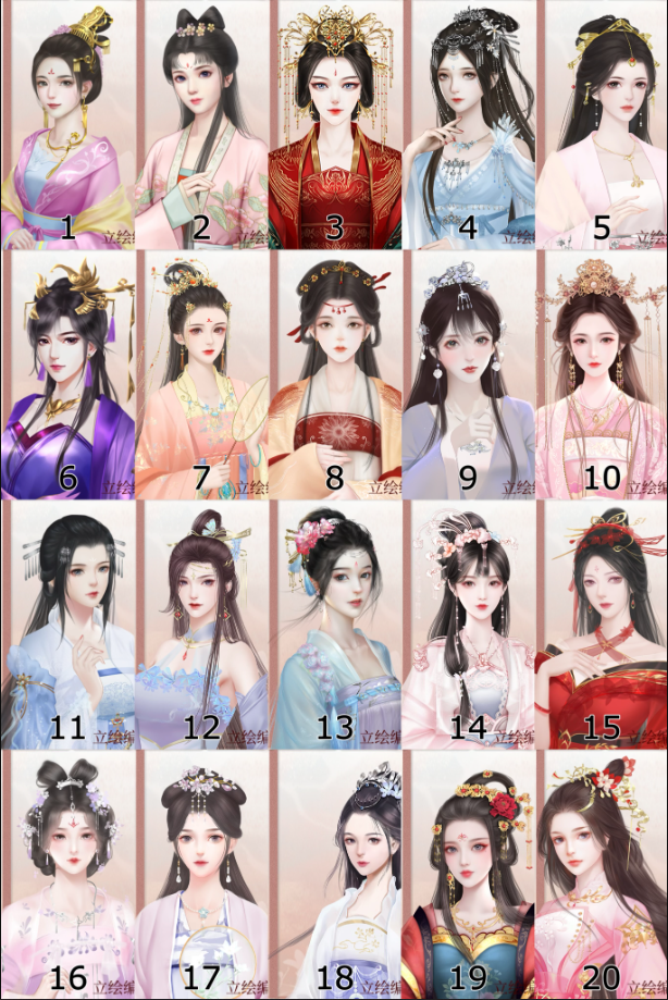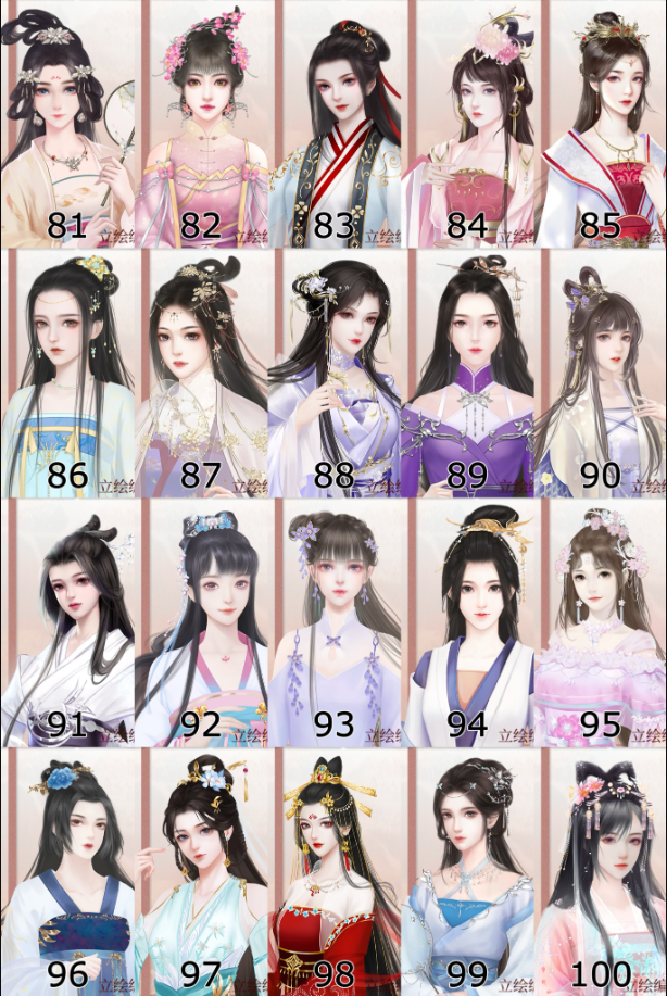 深宫曲妃子【立绘编号】1-100,如下图所示: