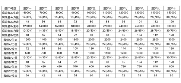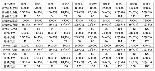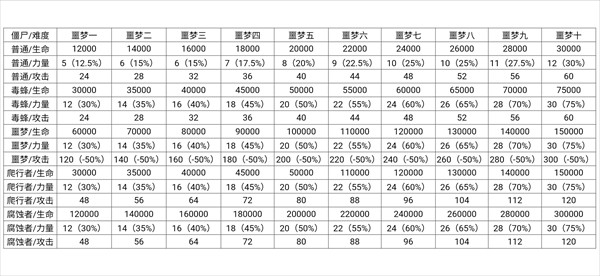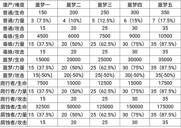 所有模式,难度每增加1,所有僵尸移速增加2%