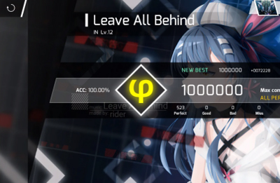 6、炫酷的谱面,优秀的音律,挑战「EZ」、「HD」、「IN」、[AT]四种不同难度的原创曲目。