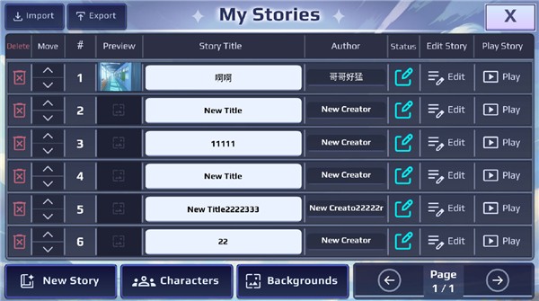 4、你可以轻松导出自己的角色和视觉小说,与朋友们分享你的创意成果,或者导入他们的作品,共同编织更加宏大的故事世界。