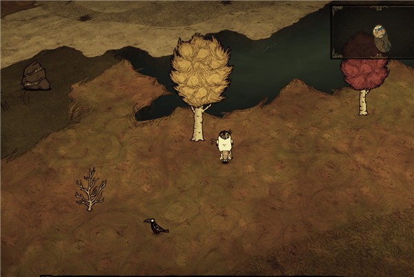 3、密切关注时间流逝,黄昏(橙色)与夜晚(蓝色)阶段野兽活跃,必须依靠火源提供照明。燃烧木材能扩大光照范围,但也可能引燃周围植被造成连锁火灾。