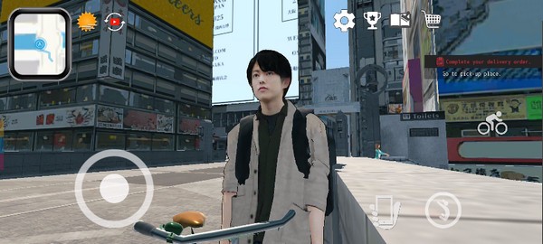 1、下载安装好游戏,进去之后我们要扮演日本的外卖小哥,在大阪地区送外卖,来看看小哥上班第一天的面孔。