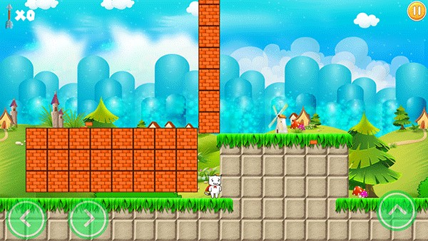2、经典虚拟按键控制,通过控制猫里奥左右移动、跳动,可踩死路上的乌龟、蘑菇等小怪物,尽量多的搜集金币,到达终点跳上旗子,就可以顺利过关啦。