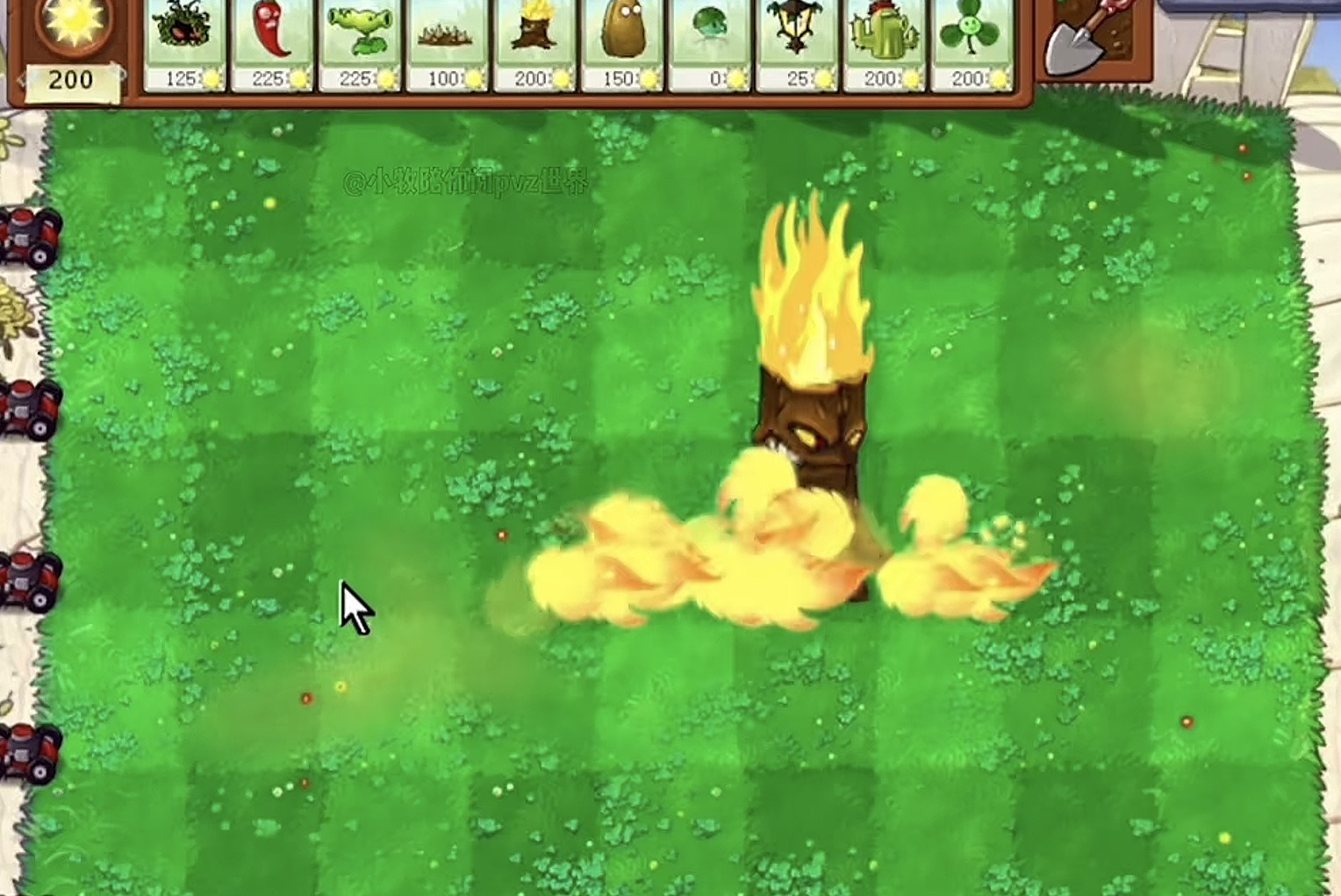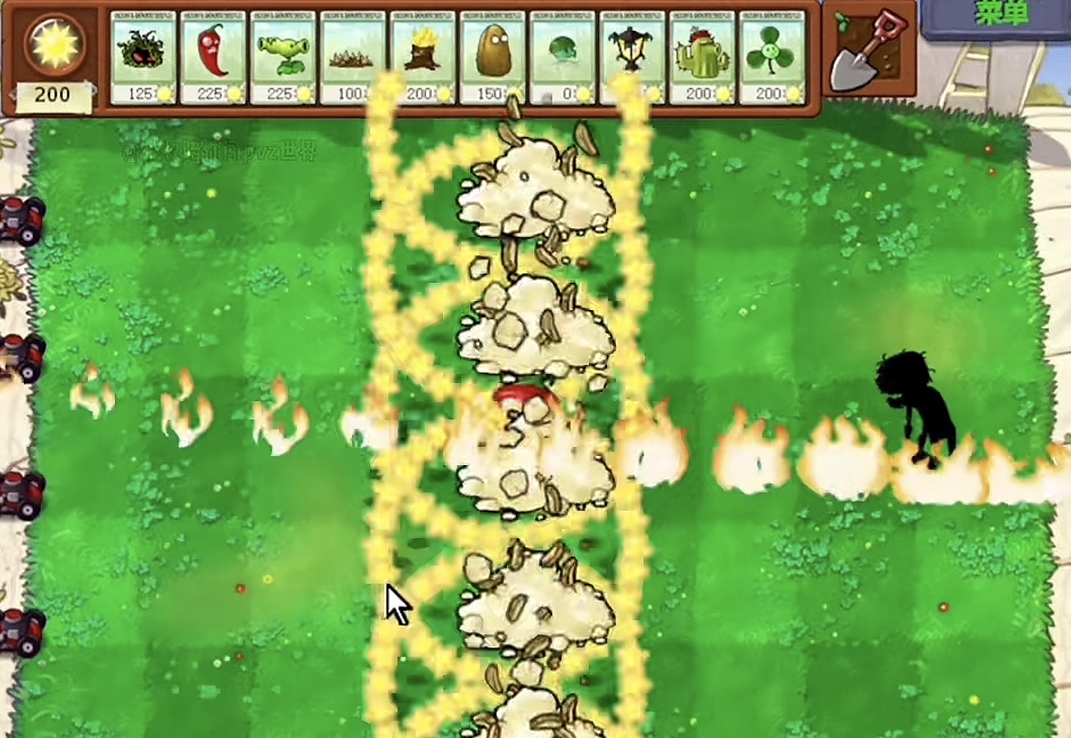 除了原本的火焰还会使该列产生土豆雷爆炸,同时伴随星星,片刻后会再次释放两排辣椒效果。