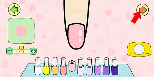 5、护理完成后就可进入涂指甲油的阶段了,用户可根据自己的喜好选择指甲油进行涂取,涂取完成后点击右上角的箭头可进入下一阶段