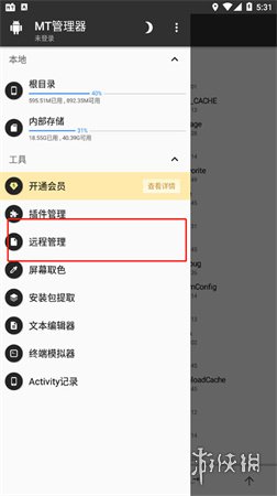 还具备图片查看、音乐播放、字体预览、执行脚本、文本对比等功能,在侧拉栏中,用户可以方便地查看存储设备、FTP连接、书签、后台任务以及工具等。