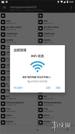 4、进入远程管理页面后,在我的电脑地址栏中输入显示的IP地址,即可进行手机文件管理。