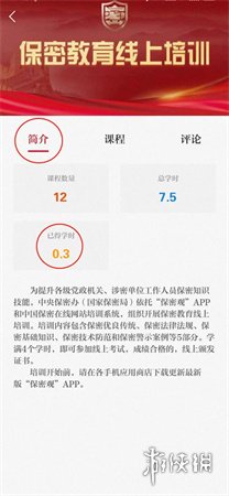 进入培训系统后,点击“课程”选项即可开始学习,课程内容涵盖四个部分,分别是保密优良传统、保密法律法规、保密技术防范以及保密警示案例,内容主要以视频和音频的形式呈现,在学习过程中,可以随时在学习页面查看已获得的学时。