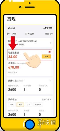 2、在财务结算界面中,您可以查看到“可提现余额”和“总余额”,请点击“可提现余额”后方的“提现”按钮。