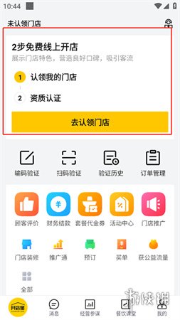 2、进入美团开店宝APP后,您将进入工作台界面,开店流程分为两步:首先,您需要认领自己的门店,其次,进行资质认证,完成这两步后,您即可使用APP的各项功能。