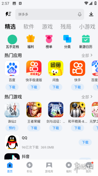 3、成功进入应用首页后,可见"游戏推荐"与"软件精选"两大核心资源板块。