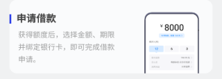 获得额度后,选择金额、期限并绑定银行卡,即可完成借款申请。