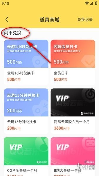 最后,您可以通过点击右上角进入“道具商城”,并在下拉菜单中找到“闪币兑换”,使用累积的闪币来兑换“会员卡”。