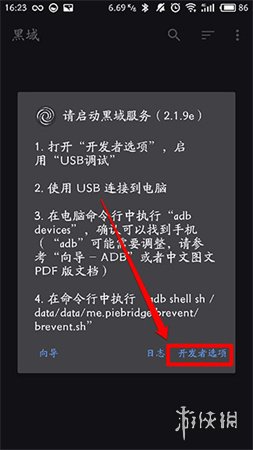 5、点击弹出的提示框中的“开发者选项”按钮,快速进入手机的“开发者选项”设置。
