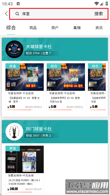 5、使用搜索功能可快速定位特定球队、球员或卡种,例如输入“库里”进行查找;