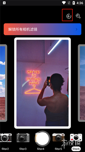 1. 进入软件后,用户会看到一个海量的胶卷滤镜库。只需从中选择自己喜欢的滤镜,然后点击屏幕中间的拍照键即可完成拍摄。