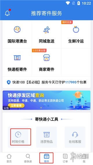 1、进入寄件页面,选择时效查询功能。