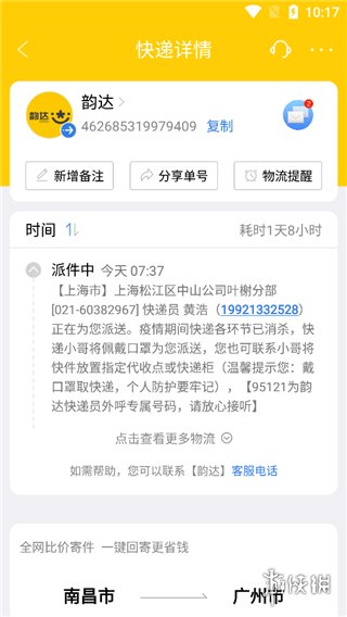 5、智能快递状态实时监控,主动推送取件、派件、签收、疑难等多类型的状态通知、防打扰等贴心功能。
