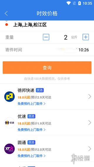 3、系统将自动展示各快递公司的运费预估结果。