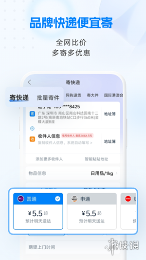 1、一键添加您的专属快递员、免手写电子面单、在线支付运费等,更多寄件功能等你来体验。