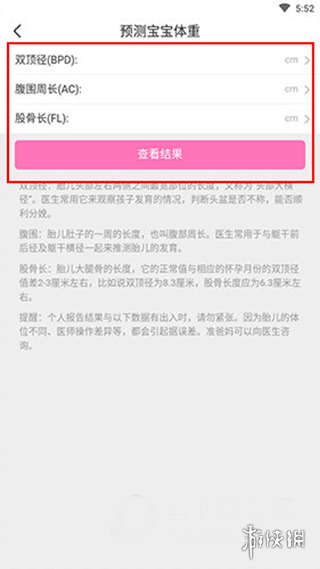 3、根据产检时医护人员提供的胎儿双顶径、腹围等指标,在对应字段准确填写数值。