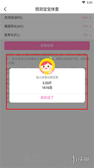 4、确认数据无误后点击"立即测算"按钮,系统将自动生成胎儿体重预估报告。