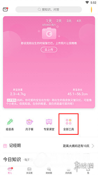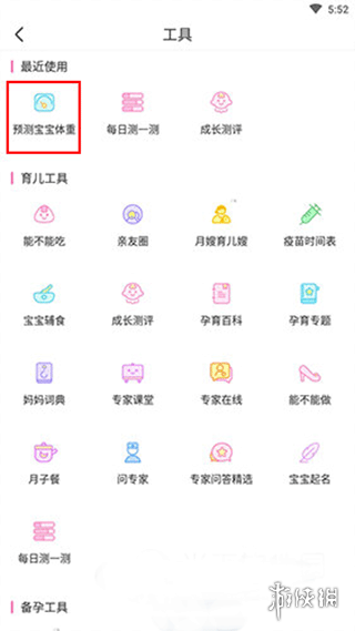 2、在工具列表页面滑动浏览,定位并轻触"预测宝宝体重"服务模块。