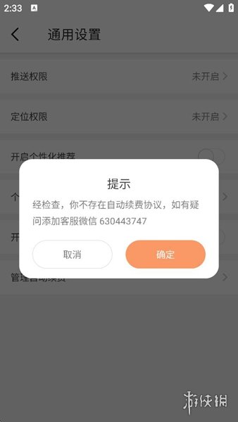 3、点击后,软件会自动跳转自动续费解约界面,点击关闭即可。