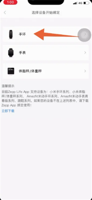 4、确认选择的手环类型。
