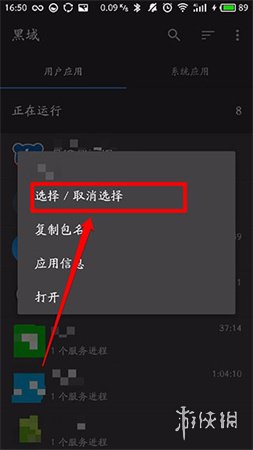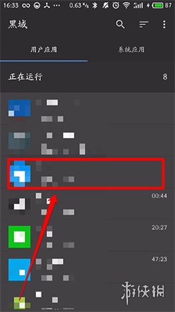 15、接着,我们就可以正常进入黑域了,点击某个不想让它在后台运行的应用。