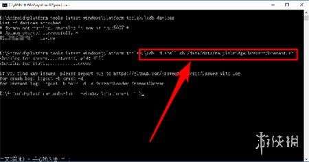 13、在弹出的命令窗口中输入“.adb devices”命令,查看已连接到电脑的手机。