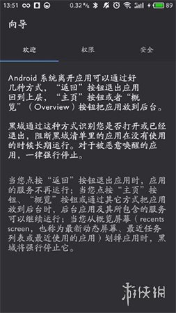 2、接着,在手机中打开“黑域”软件,仔细阅读其向导。