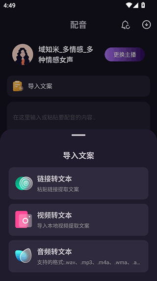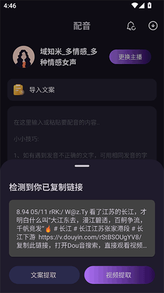 3、关键是这个软件现在还可以直接导入链接中的解析出来的文案进行免费配音