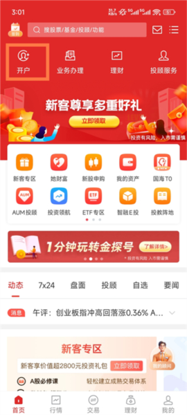 1、进入APP先需要开户,点击开户