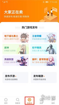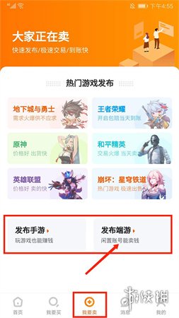 4、在【我要卖】界面,你可以发布手游或端游的账号信息进行出售。