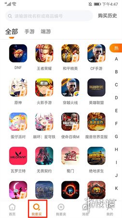 3、进入【我要买】界面,你可以选择购买王者荣耀、和平精英、CF、原神等手游和端游的账号。