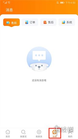 5、【消息】界面将展示售前、订单、售后和系统消息,帮助你随时掌握最新动态。