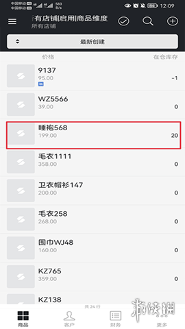 1、打开多客管理端APP,在商品界面中选择需要清零的商品。