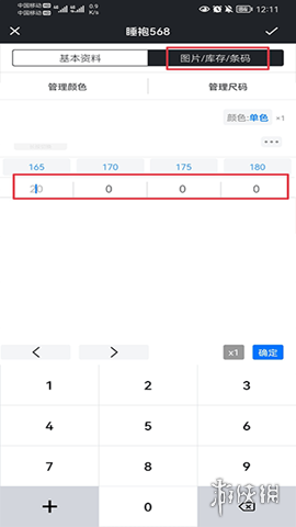 3、在库存界面中,找到对应商品的尺码,并在其下方输入“0”。