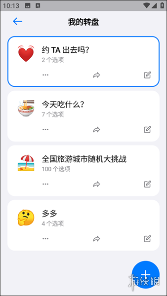 2、在此页面,可以看到当前我们拥有的转盘,选择页面右下角的加号来进行自定义操作。