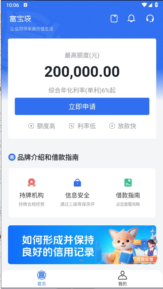 富宝袋app是一款正规可信赖的线上借贷平台,平台支持大额度贷款,最高可借款20万,用户可以选择不同额度自由申请,通过手机进行操作,还可以定制专属还款计划,自己选择周期和时间,不管是几个月还是今年都可以自己设置,还可以制定贴心的自动还款功能哦。
