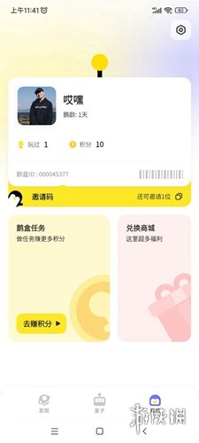 4. 在“我的”页面,你可以查看自己的鹅盒ID,并且软件还会免费赠送邀请码给玩家,以便让更多的游戏爱好者加入鹅盒社区。