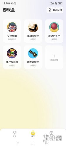 3. 点击“盒子”功能,你可以查看你最近玩过的游戏记录。