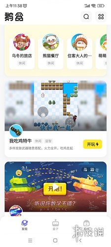 2. 进入软件后,在“发现”板块,你可以看到丰富的游戏推荐,例如迷你攻势、羊了个羊、我吃鸡特牛等热门游戏。