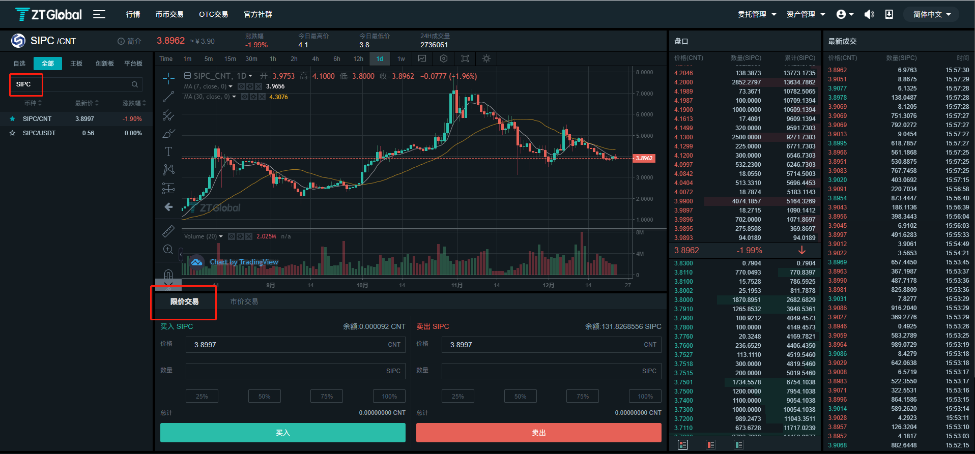 2、搜索您想交易的币种,以SIPC为例,选择对应交易对;